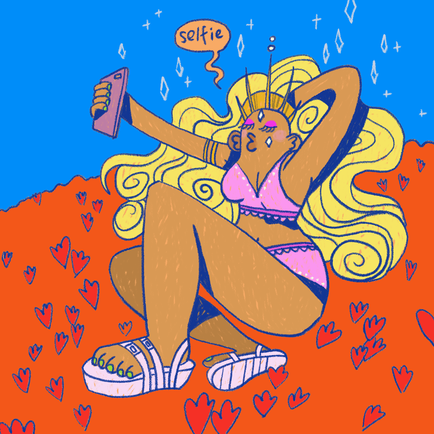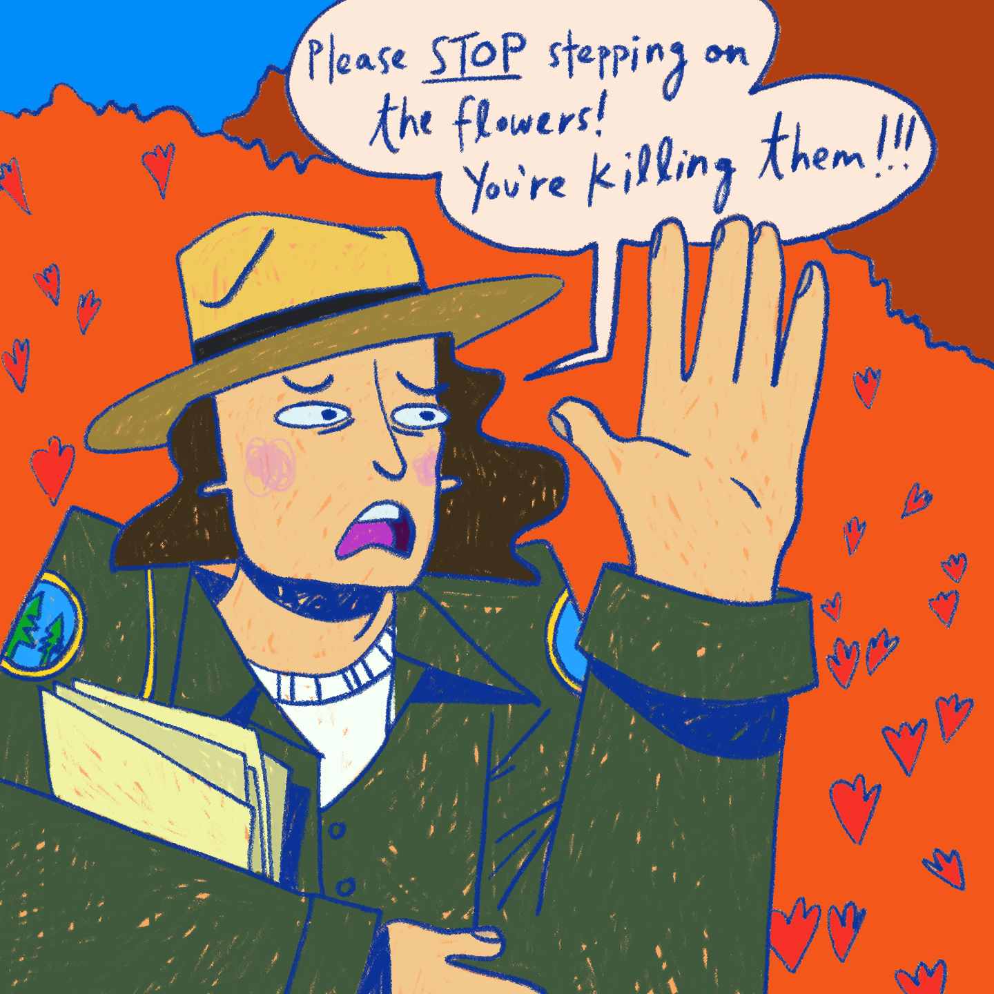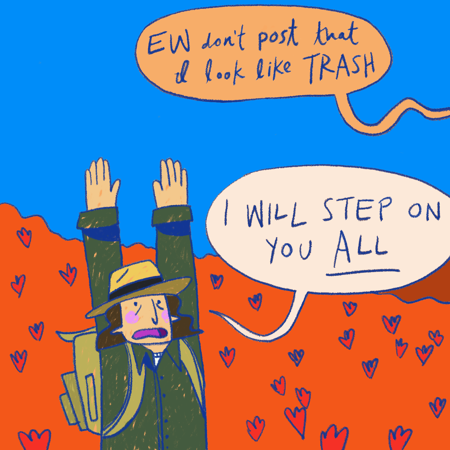 A 4 panel comic about the destruction of the poppy flowers in LA by Instagram models.